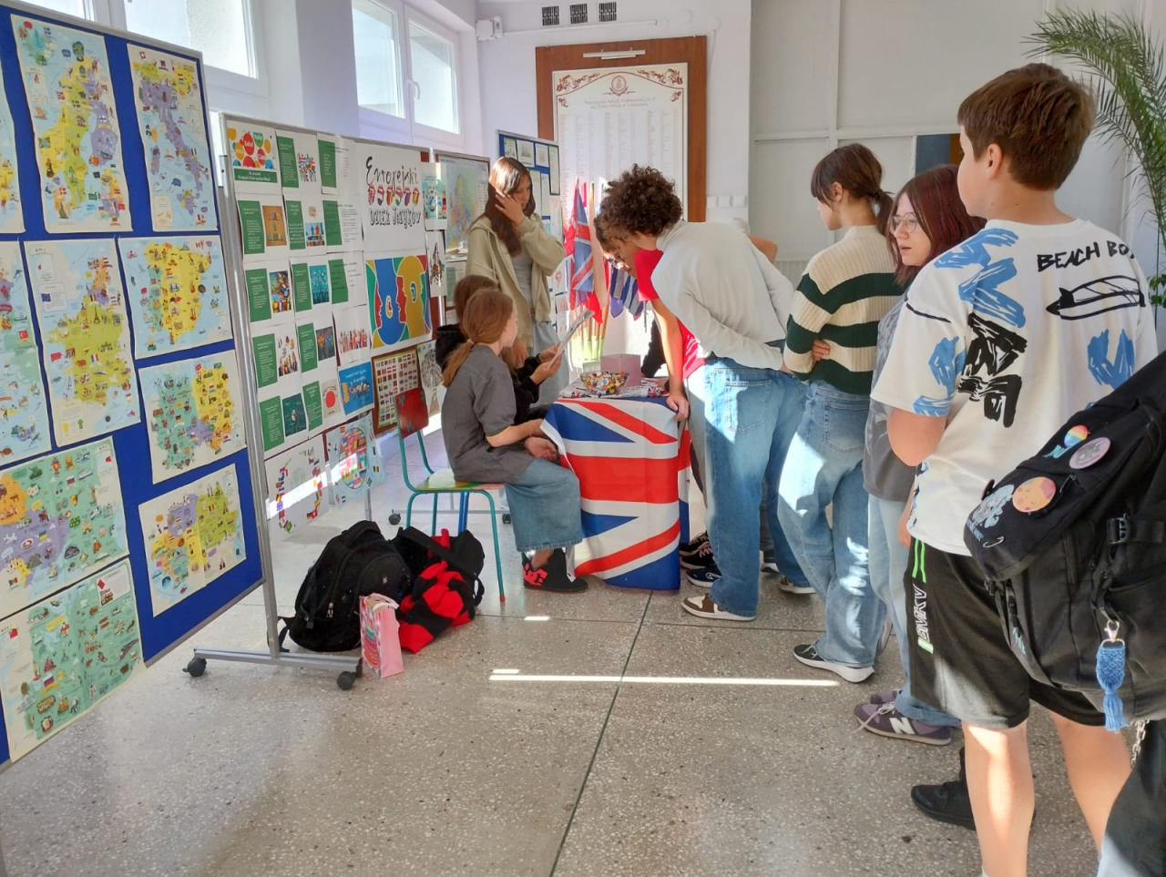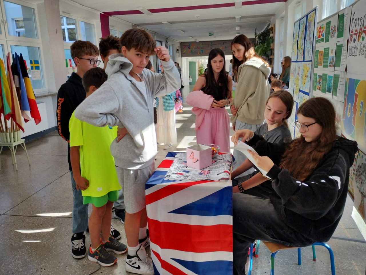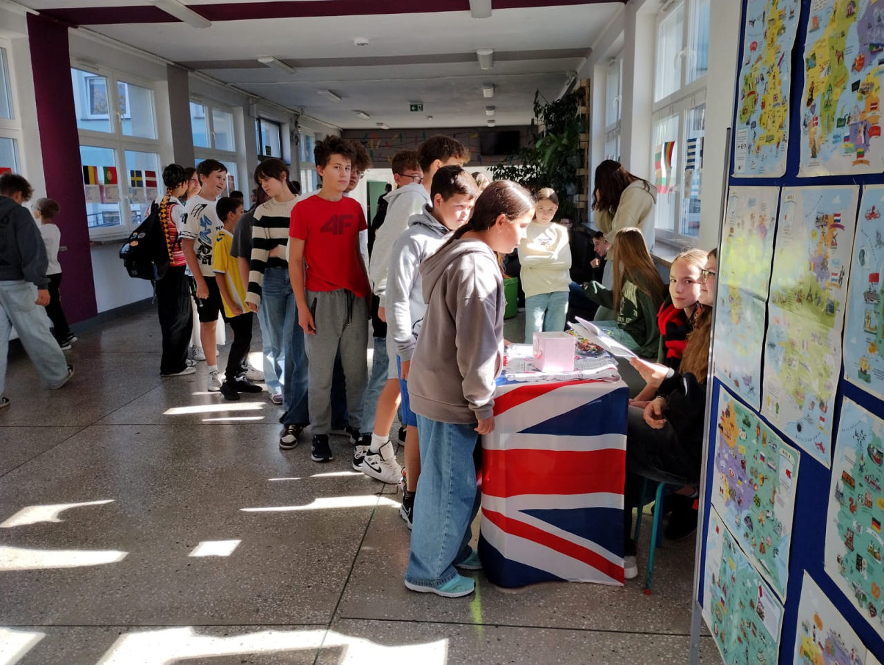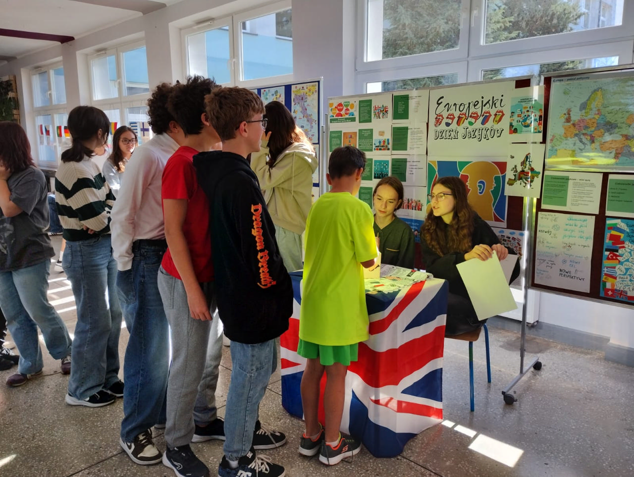 Z tej okazji została przygotowana wystawa tematyczna, która cieszyła się dużym zainteresowaniem uczniów i nauczycieli. Można było dowiedzieć się min. dlaczego warto uczyć się języków obcych, jak nazywają się kraje i stolice państw Europy, oraz jakie są najciekawsze zabytki poszczególnych państw. Wystawę wzbogaciły kolorowe flagi krajów europejskich, hasła promujące naukę języków obcych, plakaty przygotowane przez uczniów oraz ciekawostki kulturowe. W czasie długich przerw na korytarzu szkolnym dla klas