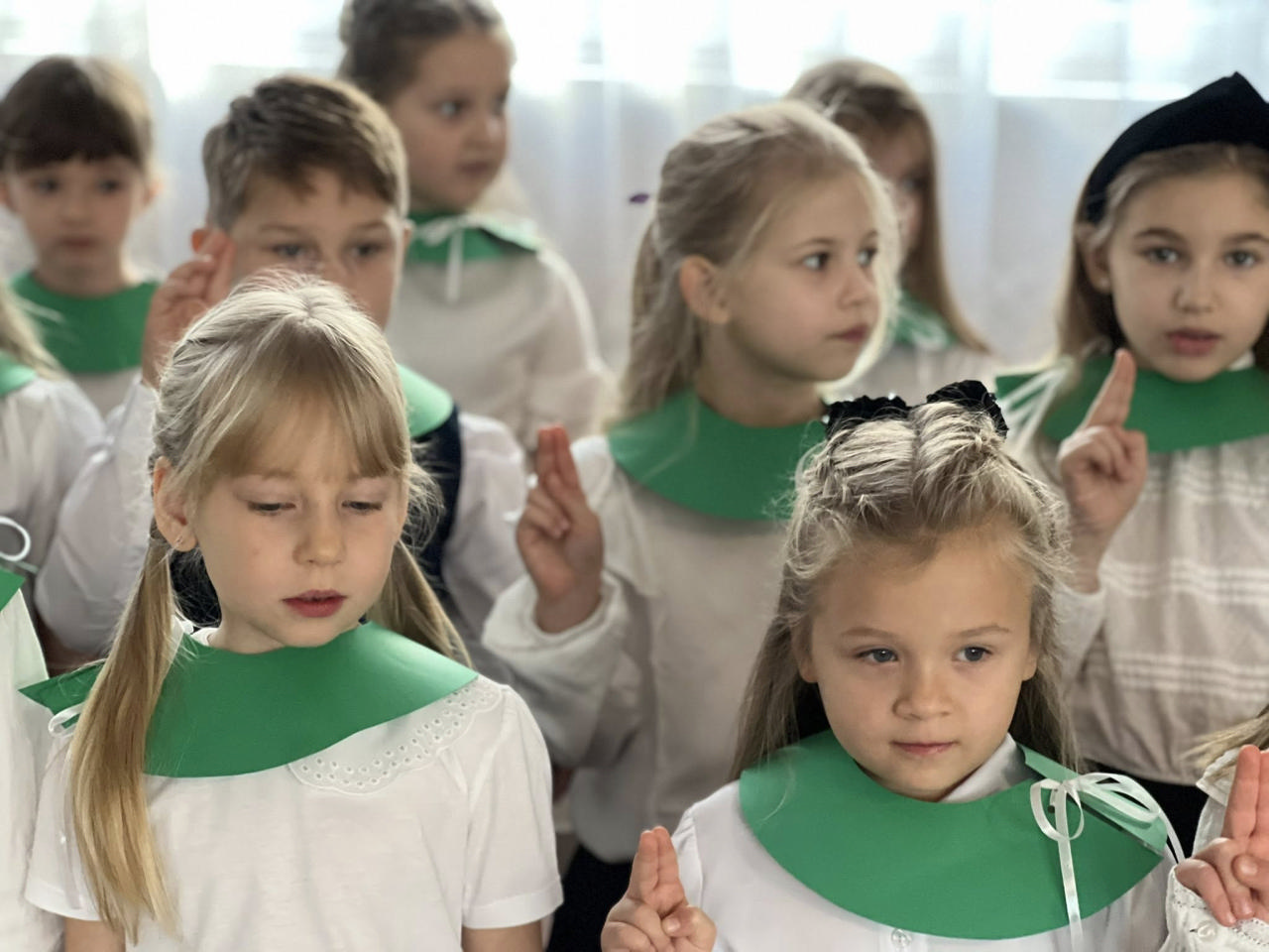 Pierwszoklasiści, ubrani na galowo, złożyli uroczyste ślubowanie na sztandar szkoły, obiecując być pilnymi uczniami, dobrymi kolegami i godnie reprezentować naszą szkołę.