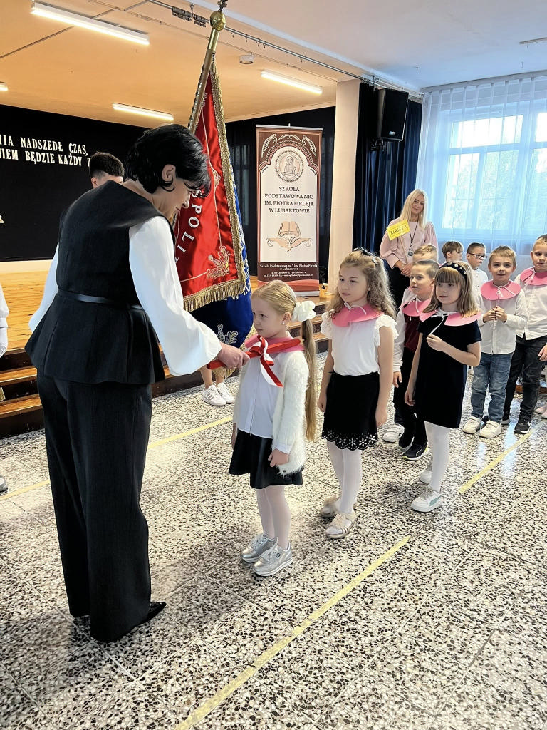 Po ślubowaniu nastąpiło symboliczne pasowanie na ucznia przez panią dyrektor Małgorzatę Burzyńską.