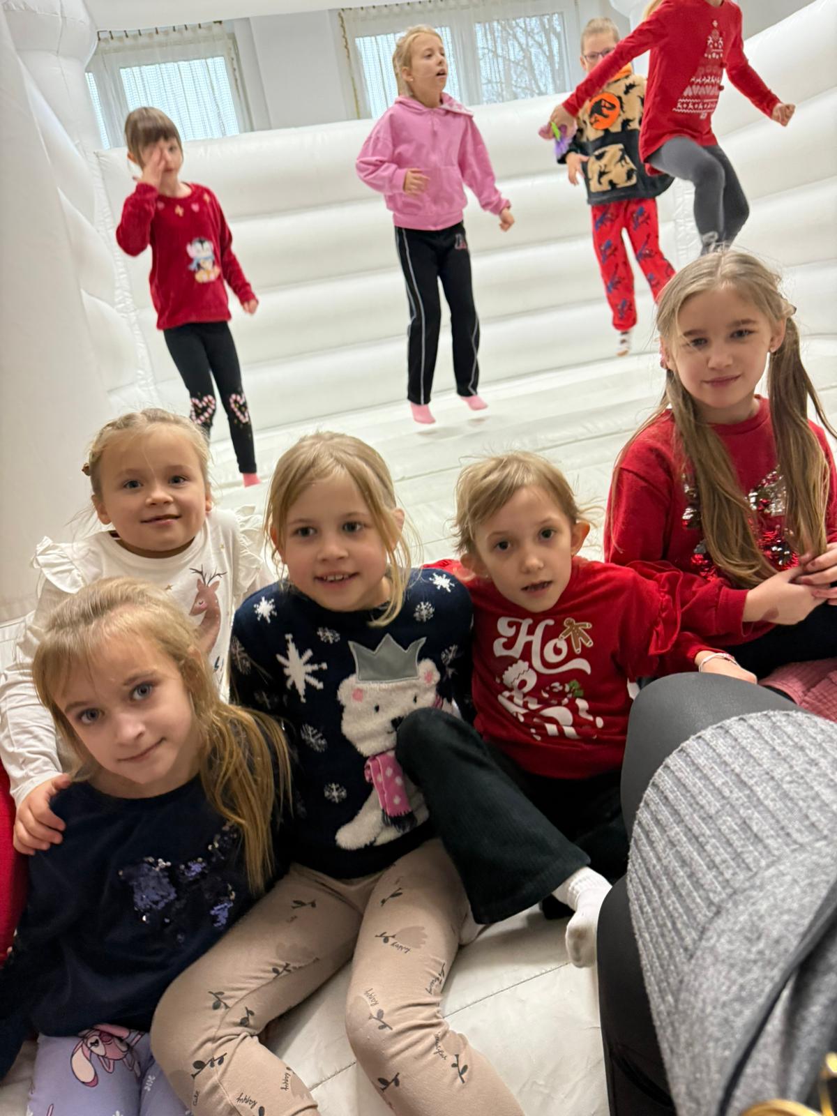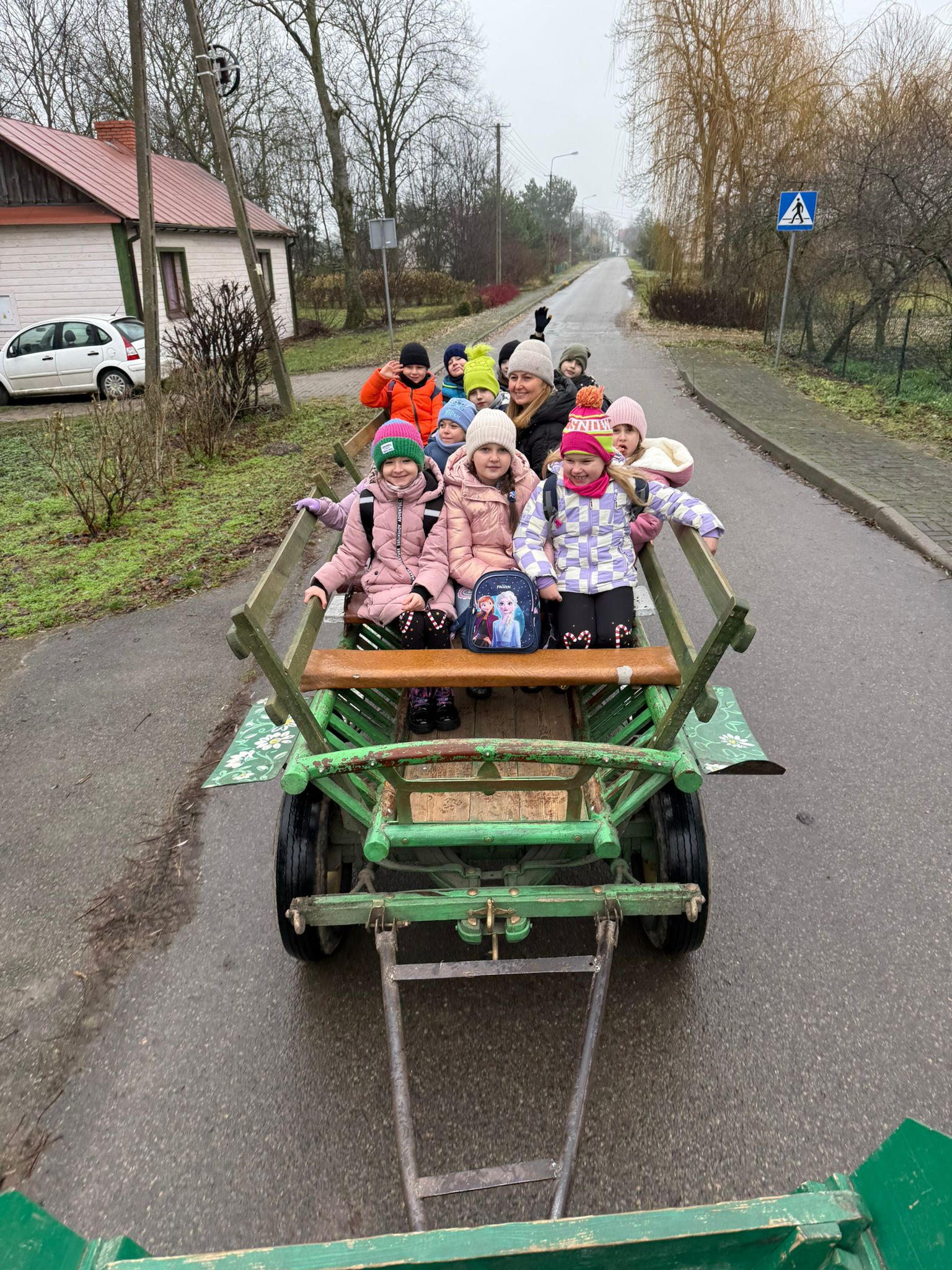 Nasz wyjazd to również świetna lekcja o obyczajach bożonarodzeniowych. Poznaliśmy tradycje związane z kolędowaniem oraz obejrzeliśmy inscenizację o narodzeniu Jezusa. Nie zabrakło oczywiście wspólnego śpiewania kolęd. Dowiedzieliśmy się, że nasi przodkowie zdobili zawsze żywe choinki orzechami, rajskimi jabłkami, ciasteczkami, pierniczkami, a także ręcznie robionymi ozdobami z papieru, bibuły i słomy. Porozmawialiśmy o potrawach goszczących na wigilijnym stole oraz symbolice pustego nakrycia i sianka. Po szaleństwach zakupowych i na zimowym dmuchańcu, udaliśmy się w drogę powrotną.