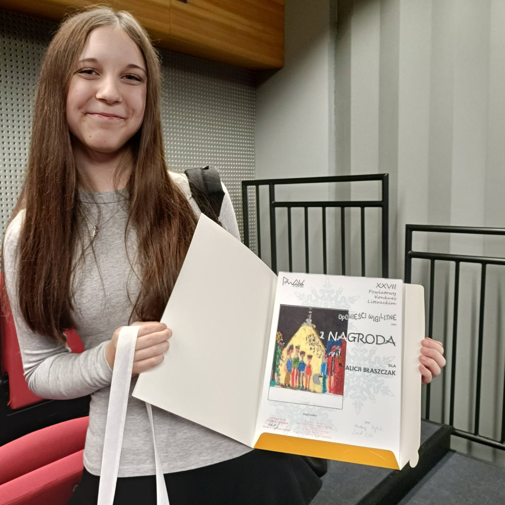 Utwory naszych uczniów zostały zauważone w XXVII Powiatowym Konkursie Plastycznym i Literackim "Opowieści wigilijne" organizowanym przez Powiatowy Młodzieżowy Dom Kultury w Lubartowie. W czasach, gdy pisanie coraz bardziej kojarzy się z nudą, zapał literacki w szkole nie wygasa, a wręcz przeciwnie – młodzi twórcy szeroko rozwijają skrzydła swojej wyobraźni i piszą, piszą, piszą... tym razem natchnieni magią bożonarodzeniowych klimatów…