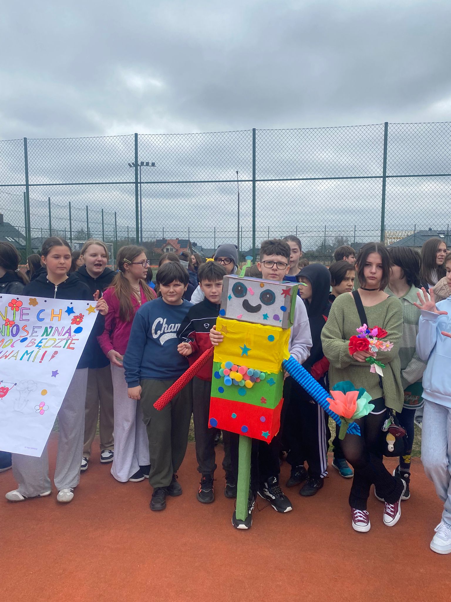 - Wspólny finał był na boisku szkolnym. Głos zabrała Dyrekcja naszej szkoły. Klasy prezentowały przed jury, swoje dzieła z warsztatów plastycznych i odbył się wspólny przemarsz w rytm muzyki na powitanie wiosny oraz wszyscy odtańczyli krótki układ przygotowany przez Radę Samorządu Uczniowskiego.