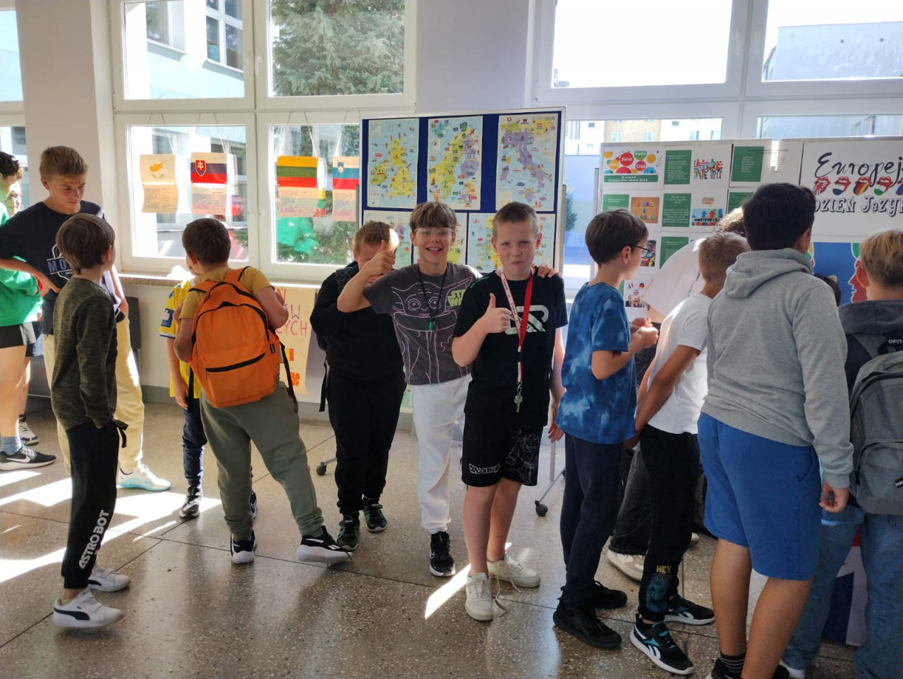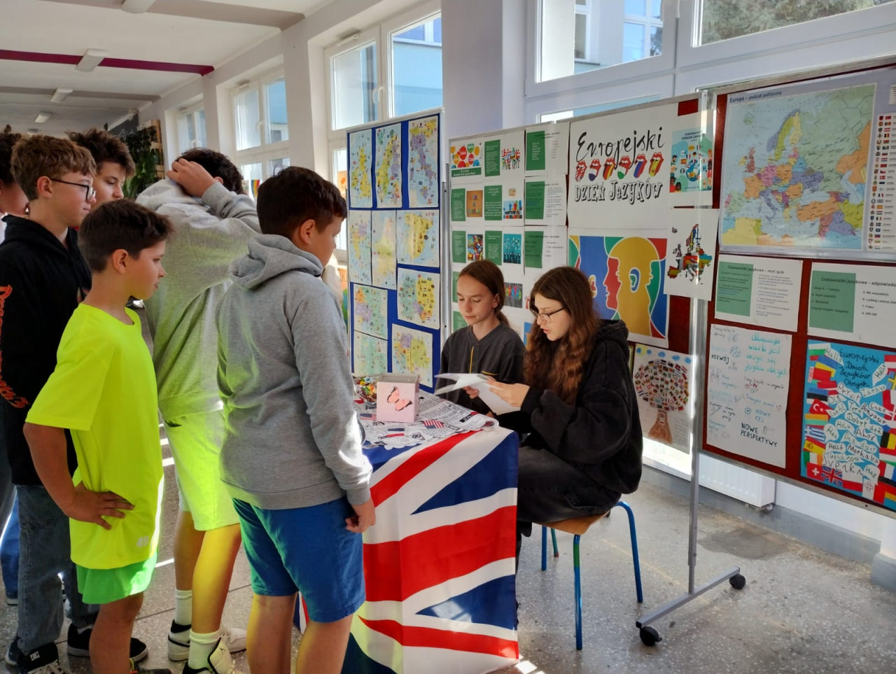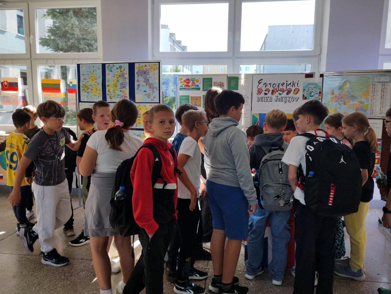 Z tej okazji została przygotowana wystawa tematyczna, która cieszyła się dużym zainteresowaniem uczniów i nauczycieli. Można było dowiedzieć się min. dlaczego warto uczyć się języków obcych, jak nazywają się kraje i stolice państw Europy, oraz jakie są najciekawsze zabytki poszczególnych państw. Wystawę wzbogaciły kolorowe flagi krajów europejskich, hasła promujące naukę języków obcych, plakaty przygotowane przez uczniów oraz ciekawostki kulturowe. W czasie długich przerw na korytarzu szkolnym dla klas