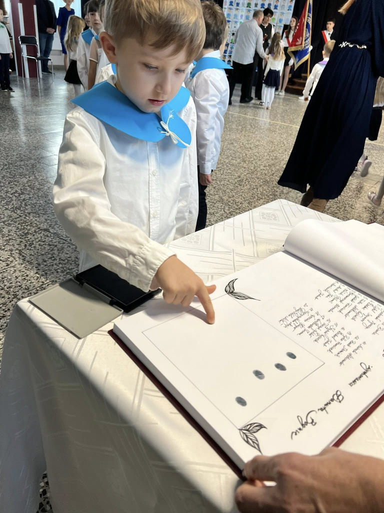 Po ślubowaniu nastąpiło symboliczne pasowanie na ucznia przez panią dyrektor Małgorzatę Burzyńską.