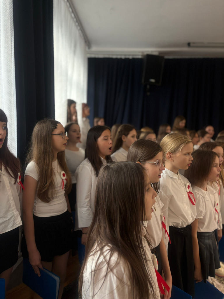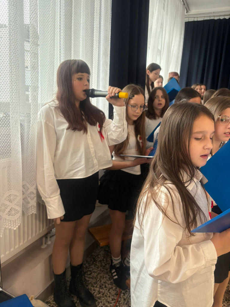 W montażu słowno-muzycznym przypomniano najważniejsze symbole naszego kraju oraz oddano hołd tym, którzy walczyli o wolność. Akademię przygotowali uczniowie z klasy 5C oraz chór szkolny klas 4–8 pod opieką pań Barbary Zegar i Emilii Sobczak- Chudzik.