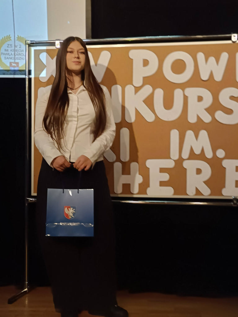 I nagrodę otrzymała Helena Strep z klasy 8e, natomiast wyróżnienie trafiło do Aleksandry Krzyżanowskiej z klasy 8g.