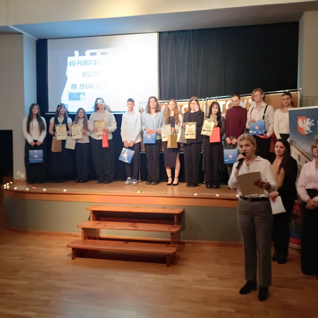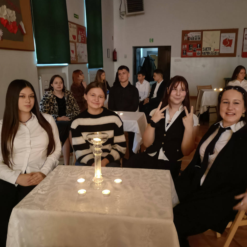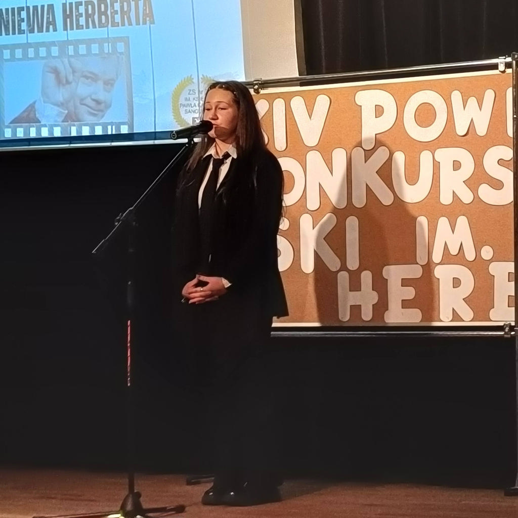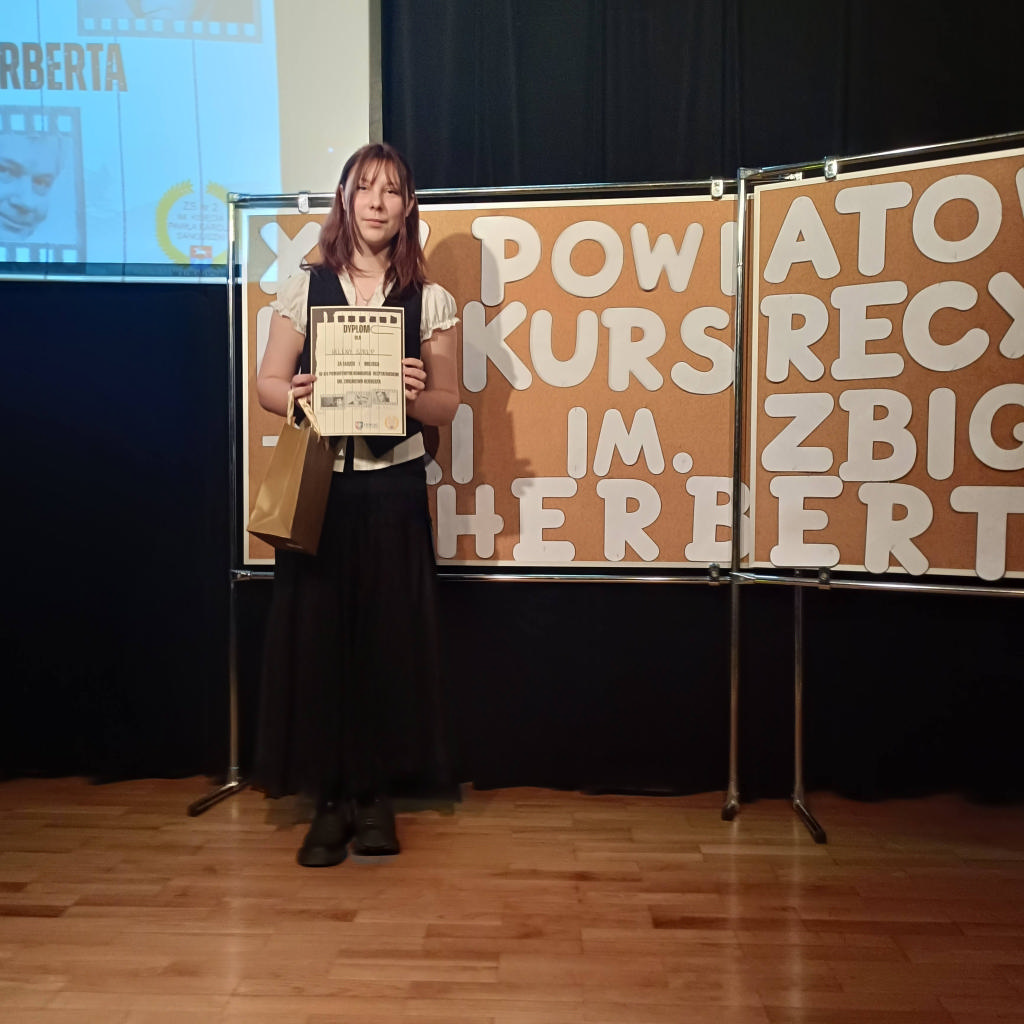 Udział w konkursie stanowił okazję do rozwijania zdolności scenicznych oraz budowania wrażliwości literackiej. Spotkanie odbyło się w kameralnej atmosferze, w sali rozświetlonej blaskiem świec. Nastrojowa oprawa wydarzenia podkreśliła piękno recytowanych utworów. Miło nam poinformować, że interpretacja poezji Z. Herberta, zaprezentowana przez uczennice naszej szkoły, została doceniona przez jury.