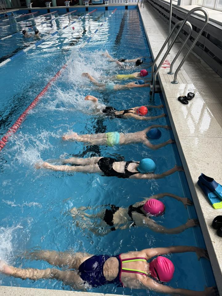 Rozwijanie umiejętności pływackich – nauka oddychania, zanurzania, poślizgów oraz pracy nóg i rąk.